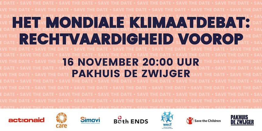 Vragen rondom het rechtvaardig opdraaien voor de kosten van klimaatschade en de prioriteiten van Nederland bij internationale klimaatonderhandelingen komen aan bod tijdens het debat tussen politici en internationale klimaatexperts op 16 november. Ook is er ruimte voor het publiek om mee te praten.