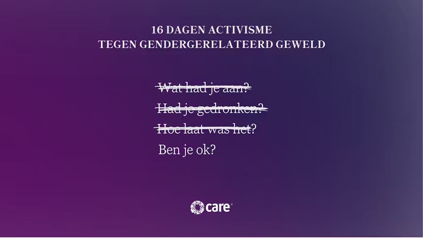 Vandaag, op de Internationale Dag voor de Uitbanning van Geweld tegen Vrouwen, roept CARE Nederland op tot actie om al het geweld tegen vrouwen en meisjes wereldwijd te stoppen. Deze dag markeert de start van de campagne 16 Dagen Activisme tegen Gendergerelateerd Geweld. Onder het thema Zonder Angst (#WithoutFear) vragen wij aandacht voor een wereld waarin vrouwen en meisjes zich overal veilig kunnen voelen.