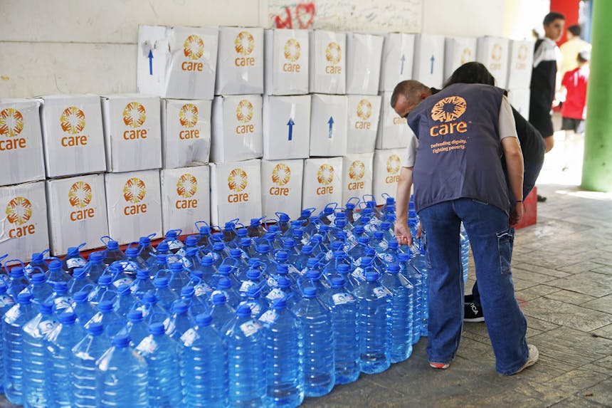 CARE levert noodhulp (schoon drinkwater) in Libanon. Foto: Paul Assaker/CARE