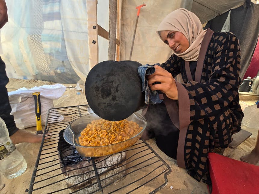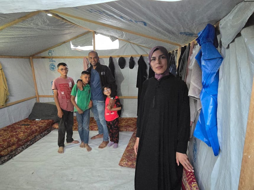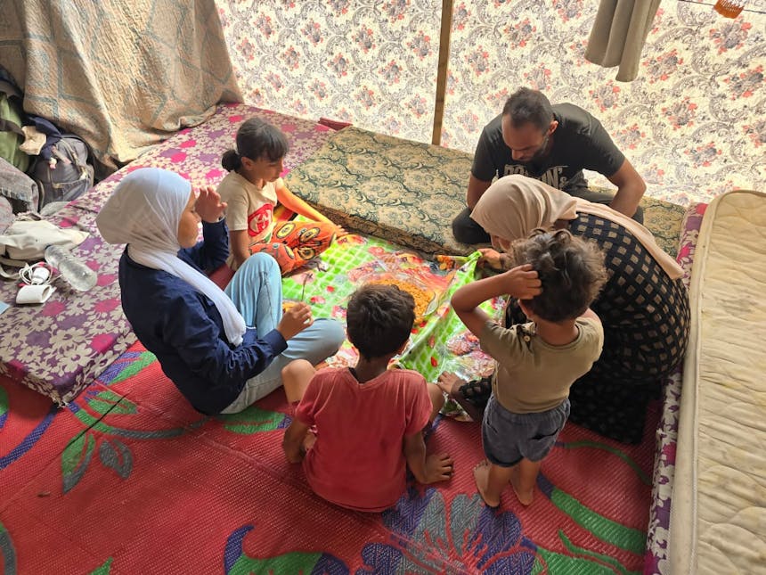 Yasmin*, een 33-jarige verpleegster en logopediste, leefde een fijn leven met haar man en vier kinderen in het noorden van Gaza totdat de oorlog hen dwong om meerdere malen te vluchten. Onlangs sloegen Yasmin en haar gezin voor de zesde keer op de vlucht, dit keer vanuit Rafah. Op dit moment is alles onzeker – ze zijn ondervoed en leven in constante angst.