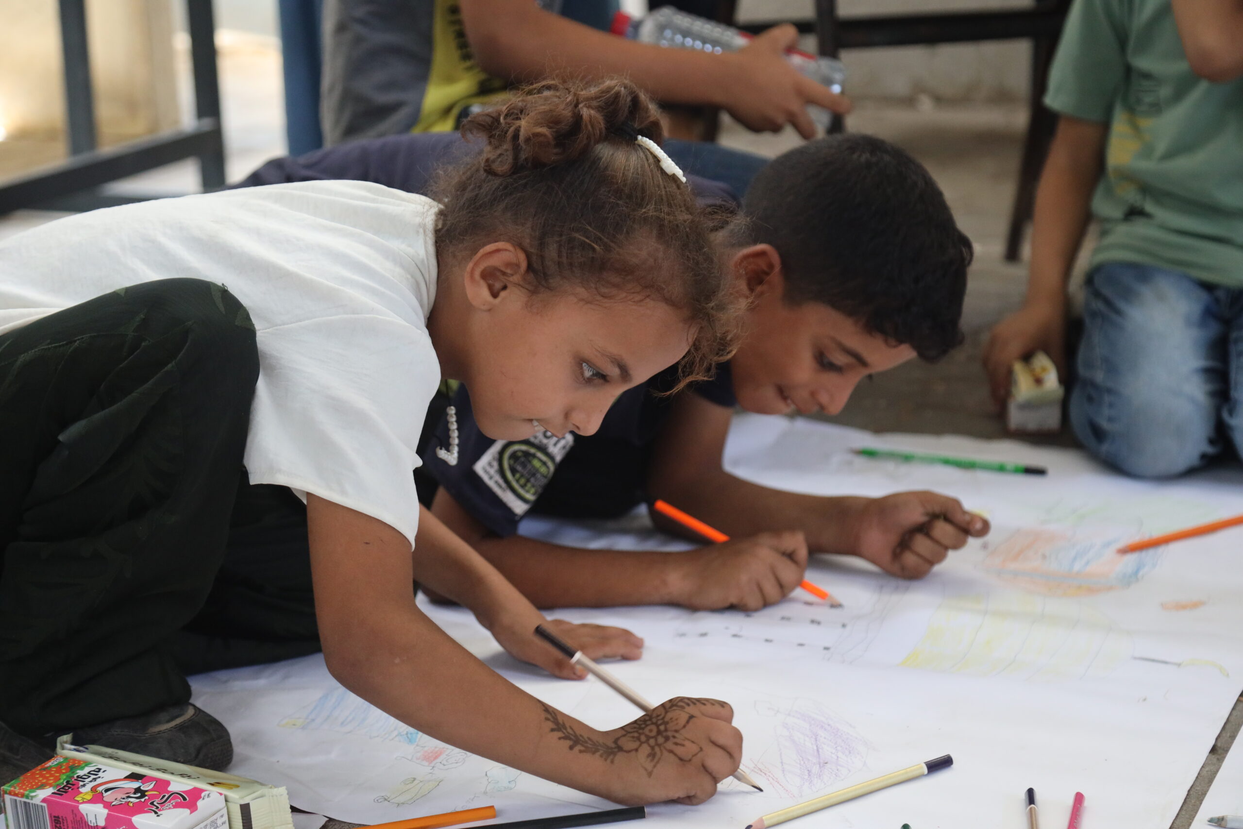 CARE biedt psychosociale ondersteuning aan kinderen door middel van creatieve activiteiten, zoals tekenen. Foto: CARE