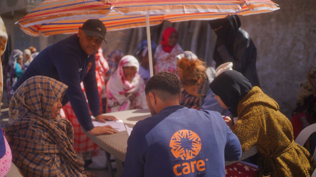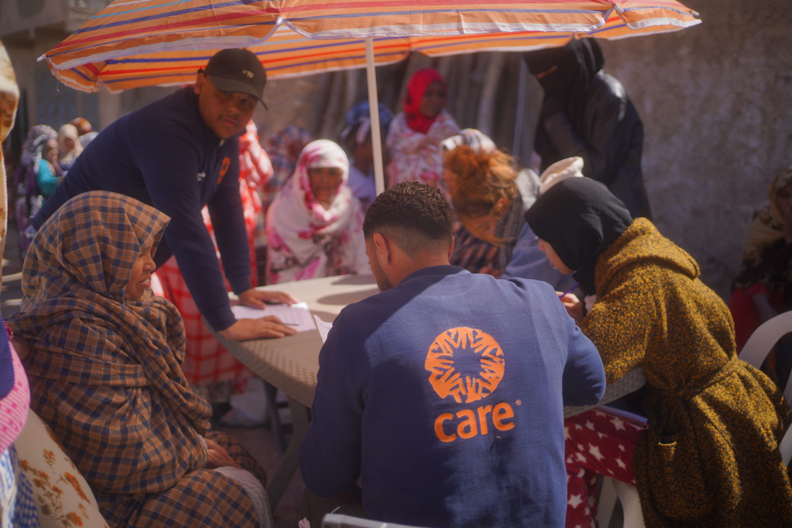 CARE Marokko en haar lokale partners behoren tot de organisaties die als eerste ter plaatse waren en in tientallen dorpen begonnen met het uitdelen van tenten, voedsel en hulppakketten aan gemeenschappen die door de aardbeving waren getroffen. Voor de aardbeving was ons werk in deze regio gericht op het versterken van de economische activiteiten en positie van vrouwen. Dankzij onze aanwezigheid in dit gebied en bestaande relaties met de gemeenschappen, konden wij snel noodhulp verlenen.