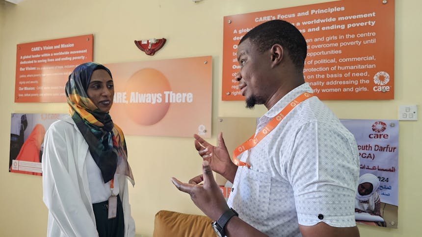 CARE is al decennialang actief in Soedan en biedt levensreddende hulp op het gebied van voedselzekerheid, water en sanitatie, gezondheid en bescherming. Sinds het uitbreken van het conflict in april 2023 heeft CARE de noodhulp fors opgeschaald. Zo bieden onze teams in Soedan medische zorg, voeding, bescherming en cashhulp. CARE werkt hierbij nauw samen met lokale partnerorganisaties, autoriteiten en andere humanitaire organisaties – ook onder moeilijke omstandigheden van onveiligheid en beperkte humanitaire toegang. Onze focus ligt altijd op de groepen in de meest kwetsbare posities: vrouwen, meisjes en kinderen die het hardst worden getroffen door conflict en ontheemding.