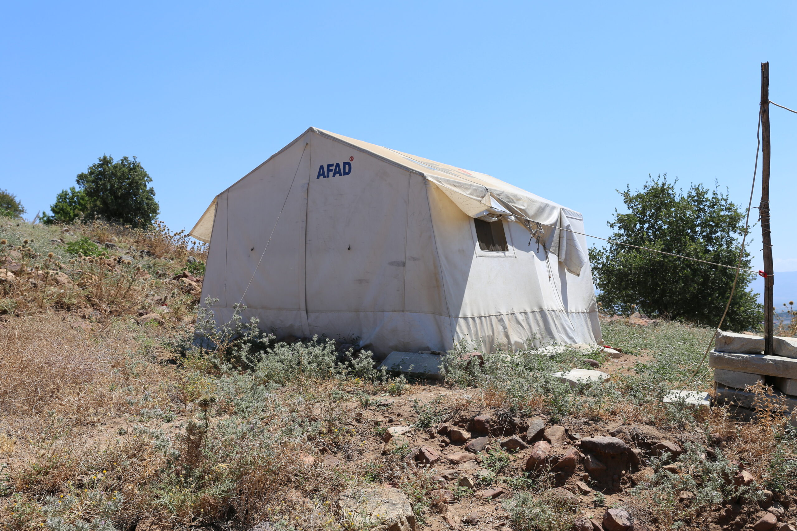 Anderhalf jaar na de ramp wonen Omer en zijn familie nog steeds in dezelfde tent als vlak na de aardbevingen. In de winter biedt deze woning weinig bescherming tegen de kou, terwijl het in de zomer ondraaglijk heet wordt. Ondanks dat hun oude huis verre van veilig is, gaan ze af en toe naar binnen om gebruik te maken van de keuken. Hun oude slaapkamers zijn volledig verwoest.