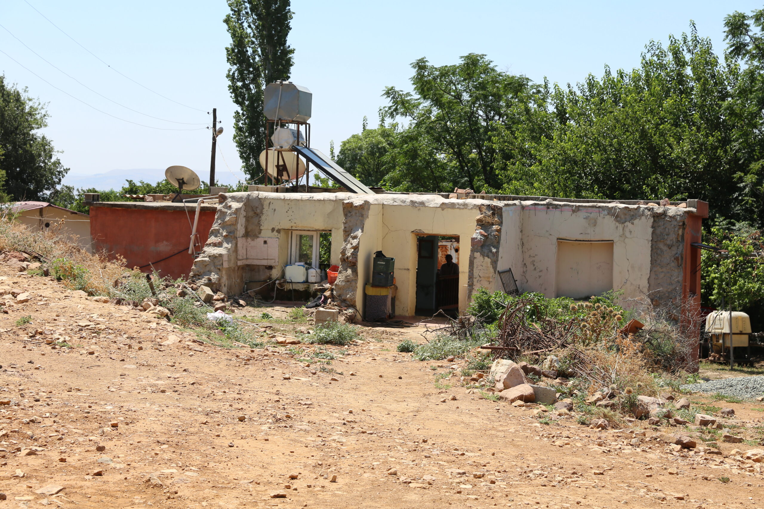 Omer woonde met zijn vier kinderen, vrouw en moeder in een rustig huis op het platteland. Toen de eerste aardbeving toesloeg, was het midden in de nacht. “De aardbeving maakte ons om 4 uur ‘s nachts wakker. In het begin was het wat milder, dus we besloten binnen te blijven. Kort daarna werd het sterker en viel de stroom uit. We hadden meteen spijt van onze beslissing om niet het huis uit te vluchten, want een muur naast ons bed stortte volledig in. Mijn dochter had een snee in haar hoofd. Vol angst verstopten we ons onder de bank totdat we veilig naar buiten konden vluchten. Mijn moeder, die door een beroerte niet goed ter been is, kon later pas uit het huis worden gered,” zegt Omer.
