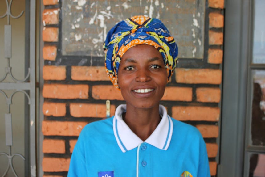 Drosca Uwiongabiye lives with her husband and two children in Kabambe, a village in Rwanda. In her spare time, she works to support other women in her community by informing them of their rights and helping them stand up for their own interests.