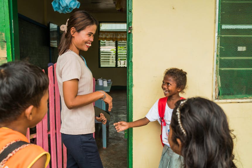 Alona Olmo (32) is lerares in groep 3 en de eerste afgestudeerde in haar familie van tien kinderen. Ze behoort tot de Mamanwa-stam en groeide op in armoede, maar werd geïnspireerd door een leraar om vol te houden.