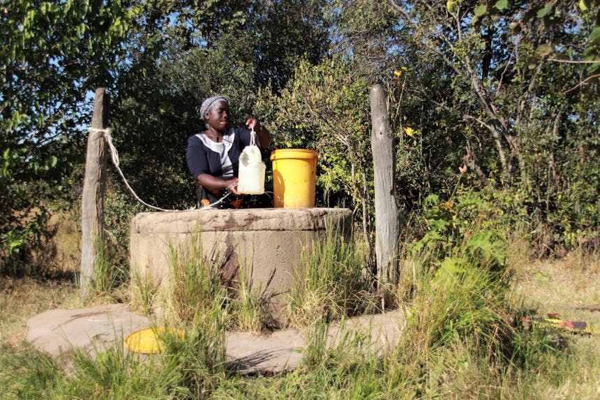 Mable haalt water uit de waterput in het dorp. Foto: Denise Schneider/CARE